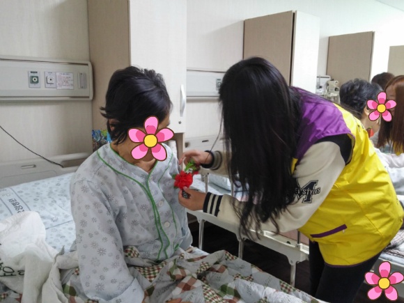 그리고 각 병동 간호과 선생님들과 함께 전 병실 환자분들께 카네이션을 달아 드리기,